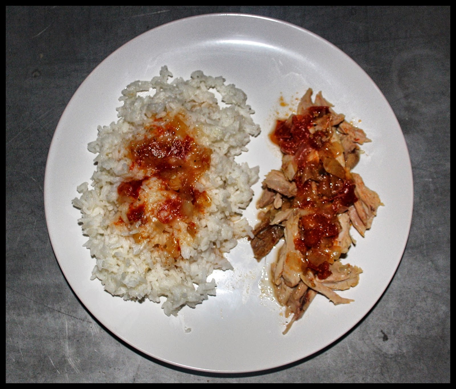 Une fois le poulet cuit, je me suis permise de l’émietter pour qu’il soit plus facile à manger dans ma lunch box et j’ai simplement fait cuire du riz pour accompagner le tout (rien de plus délicieux que de manger le riz avec les petits oignons bien confits et la tomate 🙂 ). Sur ceux, il ne me reste qu’à vous souhaiter bon appétit ! 😉