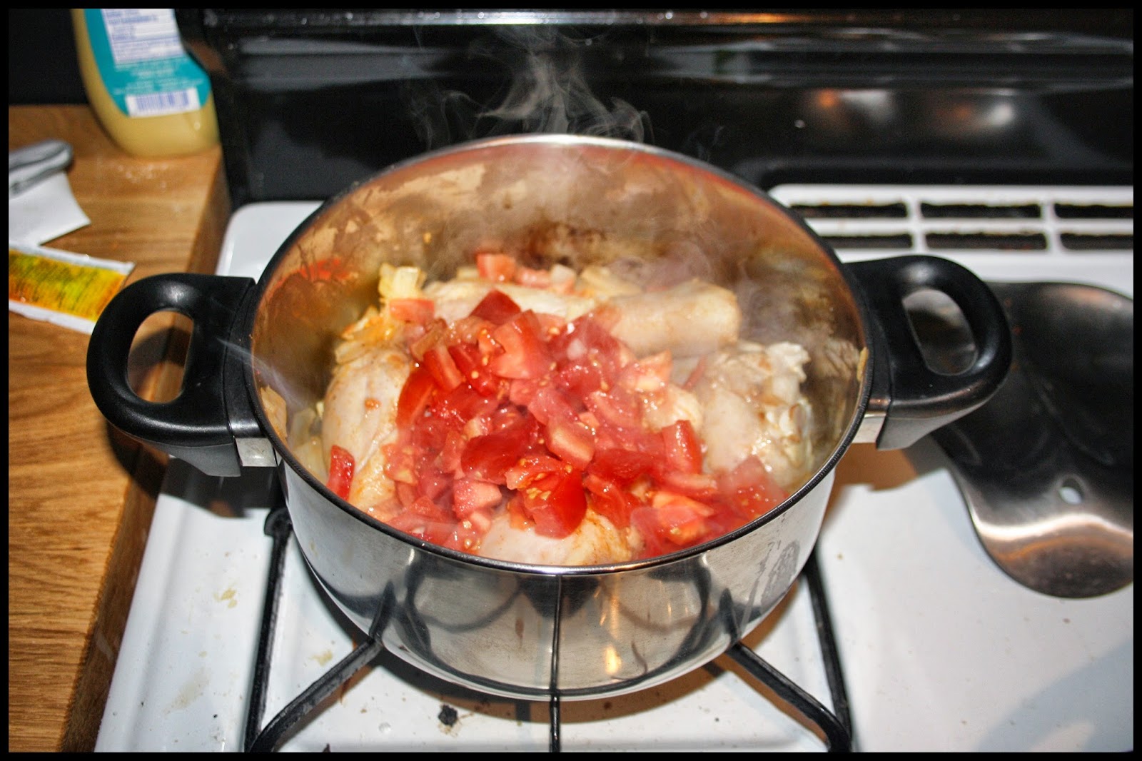 Réduisez ensuite le feu et ajoutez les tomates coupées en morceaux et un peu d’eau. Couvrez et faites cuire durant environ 1 heure en remuant de temps en temps.
