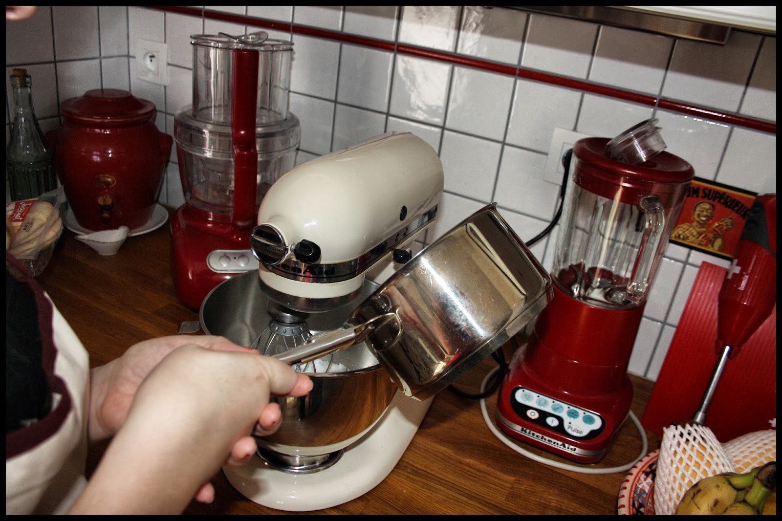 Lorsque le sirop est à température et que les blancs sont bien montés, ajoutez délicatement le sirop dans les blancs tout en laissant tourner le batteur à petite vitesse (versez bien sur les bords du bol pour éviter que le sucre chaud ne gicle). Continuez à battre le mélange jusqu’à ce qu’il retrouve une température ambiante.