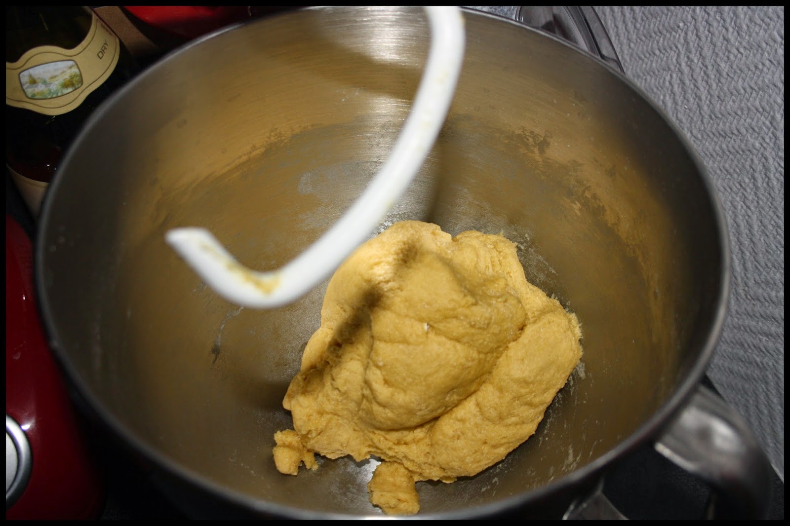 Mélangez tous les ingrédients jusqu’à obtention d’une pâte homogène que vous pétrirez une dizaine de minutes. Formez ensuite une boule que vous entourerez de film étirable avant de la placer au réfrigérateur, durant 30 minutes au moins.