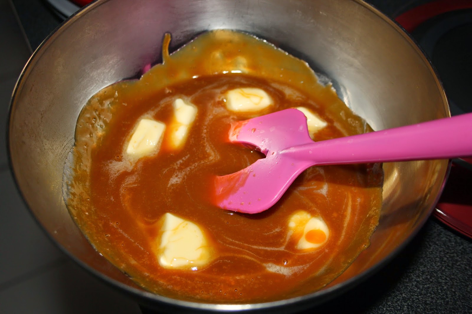 Faites un caramel à sec (faites chauffer le sucre dans une casserole jusqu’à ce que celui-ci brunisse). Ajoutez ensuite la crème liquide en remuant. Retirez du feu et mettez le tout dans un saladier avant d’y ajouter le beurre salé. Si vous n’utilisez pas la totalité du caramel,