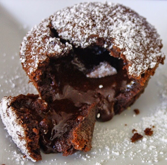 Pour le démoulage… Pas forcément évident… Le gâteau n’adhère pas au fond du moule, mais comme le cœur est liquide, le chocolat fondu a souvent tendance à faire céder le gâteau dans vos mains. Ma petite astuce : utiliser une pique en plastique un peu souple pour bien décoller les bords, puis retournez le moule dans votre main avant de le replacer dans le bon sens sur une assiette.